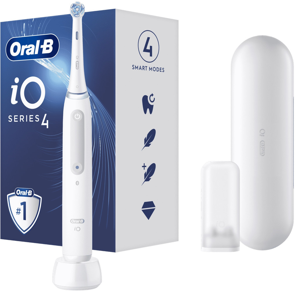 Az iO 4 elektromos fogkefe az Oral-B legkiválóbb technológiáját alkalmazza, amely ötvözi a fogászati eszközök ihlette kerek fogkefefejet és a gyengéd mikrovibrációt kibocsájtó sörtéket, a professzionális tisztaság érzéséért otthonában is.