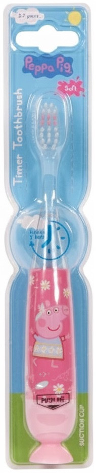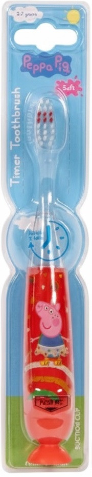 Puha, gyermekfogkefe Peppa malac figurával, tapadókoronggal és 2 percig villogó fénnyel, hogy a gyermeke meg tudja mosni a fogát.