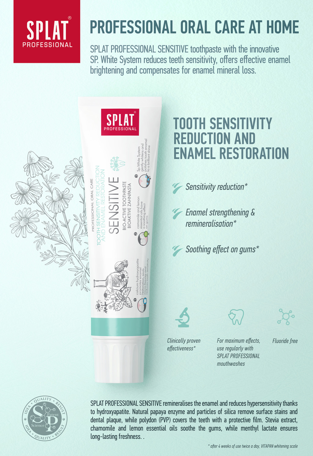 A kiváló SPLAT Professional Sensitive 100ml fogkrém legfontosabb tulajdonságai: